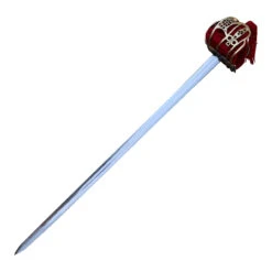 The Scottish Broadsword, otherwise known as the Basket-Hilted Sword, is truly a work of art. This type of sword was developed in the 16th century, and grew in popularity throughout the 17th & 18th centuries. Though the primary use of this sword was for military purposes, it also served other purposes such as a fencing sword in Scotland throughout the 18th century. Originally, the wired hilt featured a simpler design, but as its popularity grew so did the fanciness of the hilt. We’ve attempted to keep this 18th historical replica as accurate as possible, paying fine attention to every detail from tip to end. The blade is made from high carbon steel with a fuller and factory edges, though it can be sharpened to preference. The most distinct feature of this sword would have to be the elaborately sculpted and ornate guard made from pure brass with a rich red fabric interior. The pommel ends with a red tassel. Included with this gorgeous sword is a steel scabbard that features two lanyard rings. All in all, this sword is a beautiful piece to add to your collection for sure. Overall Length: 38.5 inches, Blade Length: 32.5 inches
