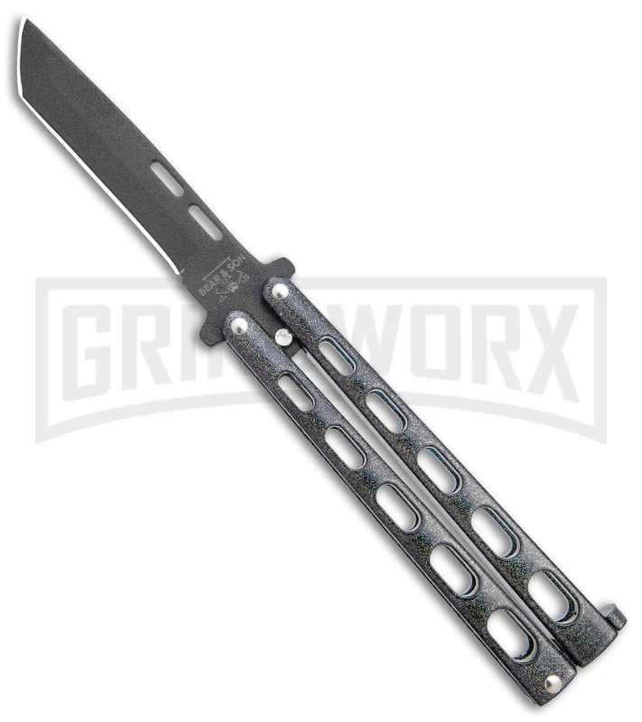 Bear & Son 115 Galaxy Butterfly Knife – Black Tanto Plain