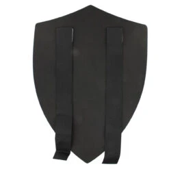 The Dark Link Shadow Foam shield is 1.15 inches thick and 14.5 inches wide. It is constructed of polyurethane foam with a silk screened triforce emblem on the front with velcro straps on the back. Overall length is 20.5 inches.