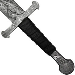 Devoted Guidance Medieval Inspired Full Tang Hand Forged Damascus Steel Templar Sword W/ Genuine Leather Sheath
