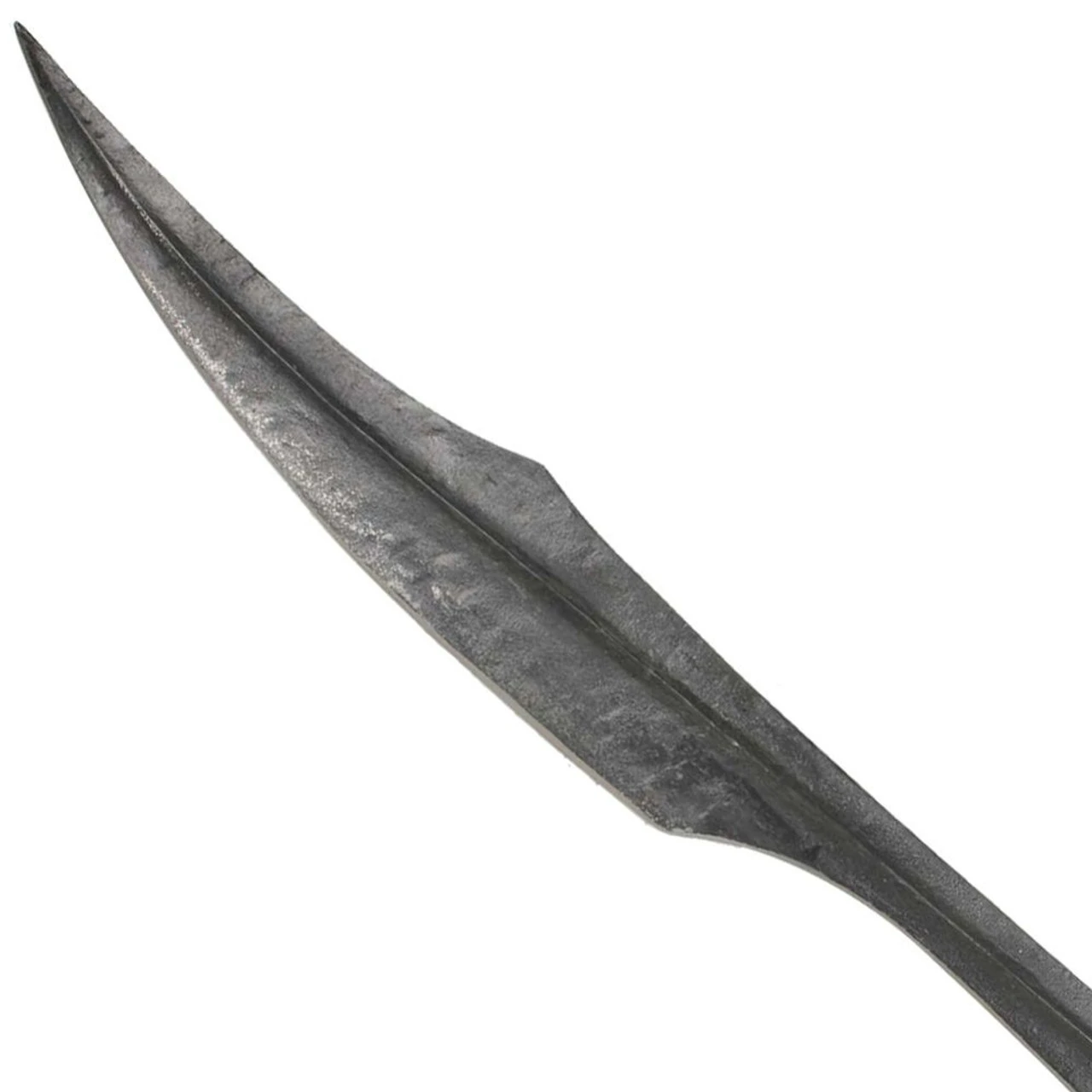 The Spartan Battle Sword is constructed of carbon steel and weathered with a stone finish to give that distinct battle worn look. The pommel and guard are made of cast aluminum and painted black. The handle is wrapped with faux leather wrapping to make the grip more comfortable for a firm hold. Overall Length: 34.25 Inches.
