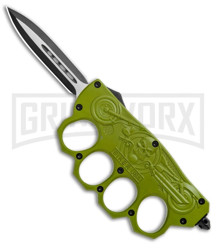 Green OTF Automatic Knuckle Knife Biker USA – Dagger Two-Tone