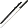 The blade is constructed of 440 high quality stainless steel with a sleek polished finish. “Heroic Courage” is laser etched onto the blade in Bushido code, along with a Hamon design. The long handle features faux ray skin wrapped in a traditionally styled black cord. A matte black scabbard is included to house your blade in style.
