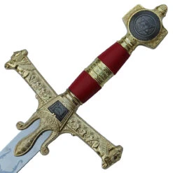 This King Solomon Sword is 51 inch overall. This classic recreation offers precision craftsmanship. The 37 inch stainless steel blade is adorned with intricate laser etchings. The cast metal pommel and guard are antique gold plated and feature the Star of David and Ark of the Covenant symbols. The grip features sleek red spacers surrounded by cast metal engravings. The King Solomon Great Sword-Red includes solid wood wall display plaque. Great item for a collector. Excellent quality. Overall Length: 51 inch.