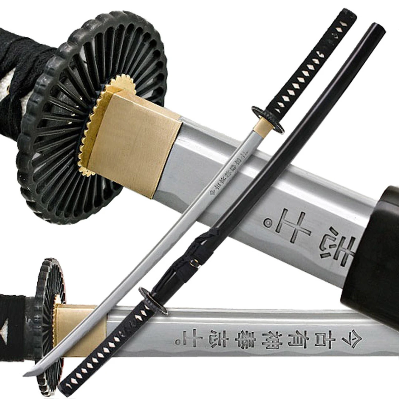 This is the Last Samurai Hand Made Full Tang Katana with Free Gift Box with Beautiful Silk inlay. The blade has been hand crafted and is fully functional. Inscribed into the steel of the blade is the Kanji “I belong to the warrior in whom the old ways have joined the new. The blade has been handmade with high carbon 1060 steel, hammered out so that the carbon is evenly distributed throughout the blade for a consistent hardness. A bloodline has been added to the top of the blade to decrease the weight of the blade and give audible feedback when swung. The blade also features a kissake, hamon, and comes with a thin edge already sharpened. At the base of the blade is the same kanji as seen as in the movie. The sword comes full tang. The Habakis are a one piece brass construction with two copper seppas. The actual Tsuba is blackened iron with a Pin Wheel design. The Tsuka is wrapped with a black cotton cord over a white ray skin Same. The tangs are secured by two bamboo Mekugis. The Menuki are copper dragons on each side of the handle. The Kashira is oxidized copper secured by the black cotton cord. The Sayas of the sword is constructed from hard wood with a high gloss black finish. The Koi-Guchi is bull horn. The Sage-o is a black cotton cord wrapped over the Kurigata. This sword also comes with a Free wooden sword stand and bag. Overall Length: 41 inch