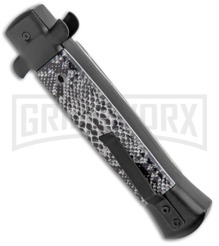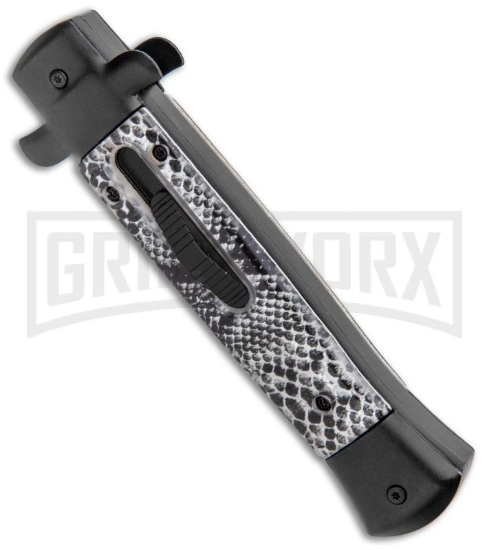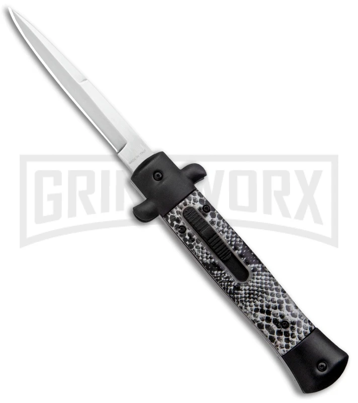 Get the best of both worlds with the Mago 9″ Italian Stiletto OTF automatic. The Mago brilliantly combines the classic style of an Italian stiletto and the tactical speed of an OTF. A front loaded thumb slide fires and retracts the blade with smooth automatic precision. Add a unique design to your collection with the Mago 9″ Italian Stiletto OTF Auto.