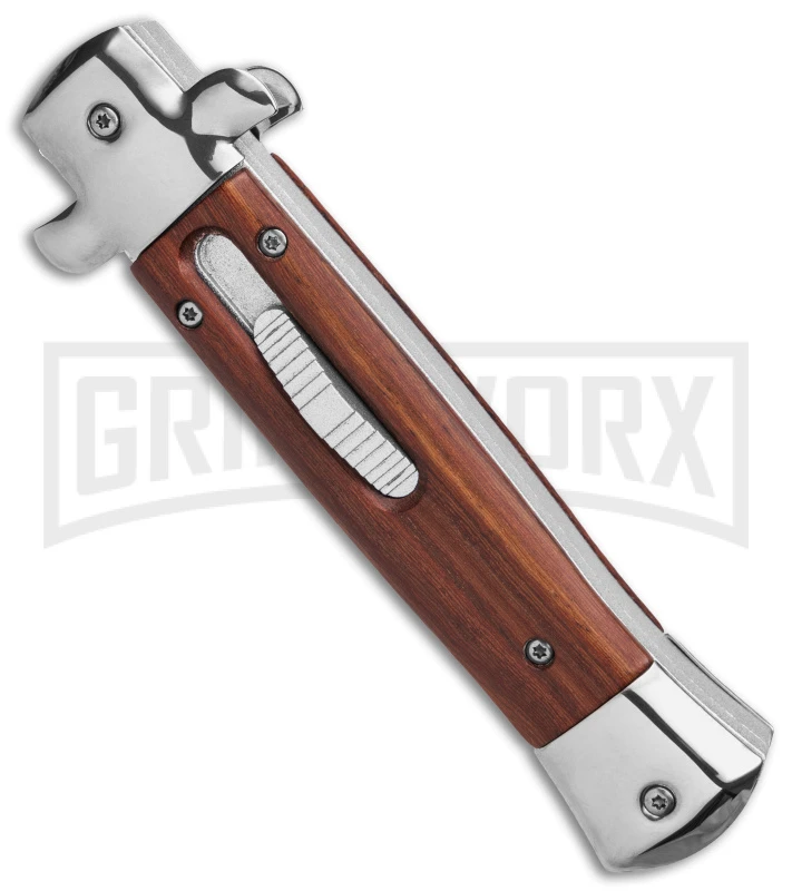Get the best of both worlds with the Mago 9″ Italian Stiletto OTF automatic. The Mago brilliantly combines the classic style of an Italian stiletto and the tactical speed of an OTF. A front loaded thumb slide fires and retracts the blade with smooth automatic precision. Add a unique design to your collection with the Mago 9″ Italian Stiletto OTF Auto.