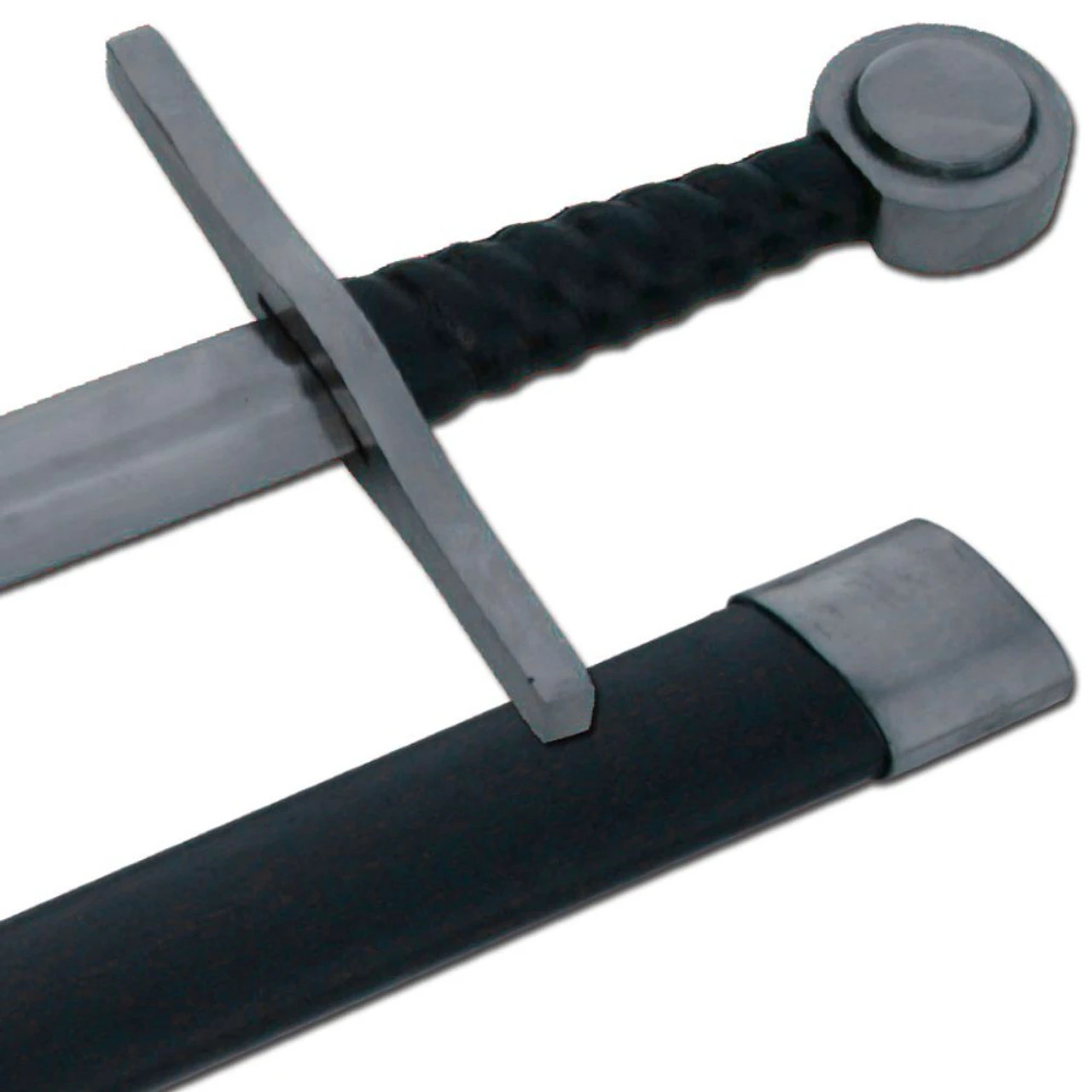 our single-hand Marshall Sword sets new standards of quality and authenticity in broadsword construction. The sword is based on an original, now in a British museum, used by one of England’s finest knights, Sir William Marshall, who served the crown faithfully under Henry II, Richard the Lionheart and Jack Lackland. This Marshall sword available is hand forged with carbon steel. Because of the true hand-forged nature of these swords, no two are alike. The blade features a central ridge fuller running 3/4 way down the middle. You can actually see the hammering on this blade which shows its real handmade authentication. The sword is classically styled, with a cruciform hilt, wheel pommel and a leather wrapped handle with finger grooving. The Hilt and Guard is made from the same material as the blade. Most of the weight is on the blade itself so that the sword can be wielded forcefully without undue wear and tear on the arm. The scabbard is leather covered with steel fittings. This is a perfect sword for re-enactor, cosplay or Medieval Festivals. *Please note that due to the carbon steel construction of this handmade sword, there may be slight imperfections including some rusting on this item. This rust is easily removable and should not deter from the longterm value of this item. Further rusting can be avoided by proper maintenance of the blade.