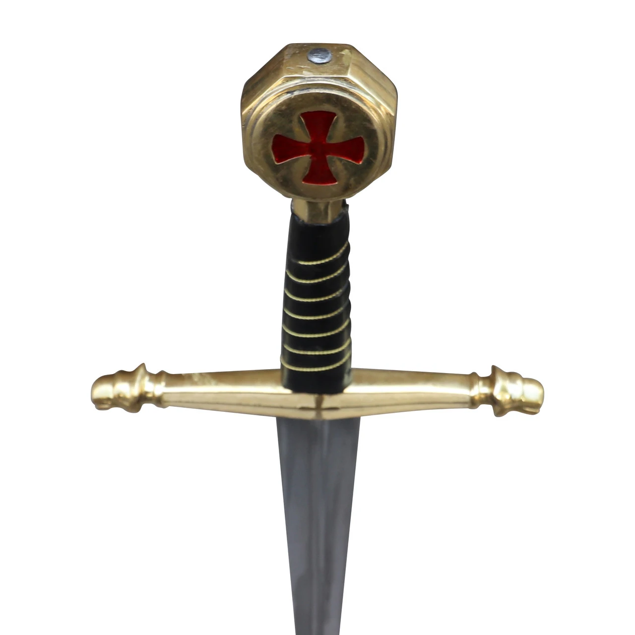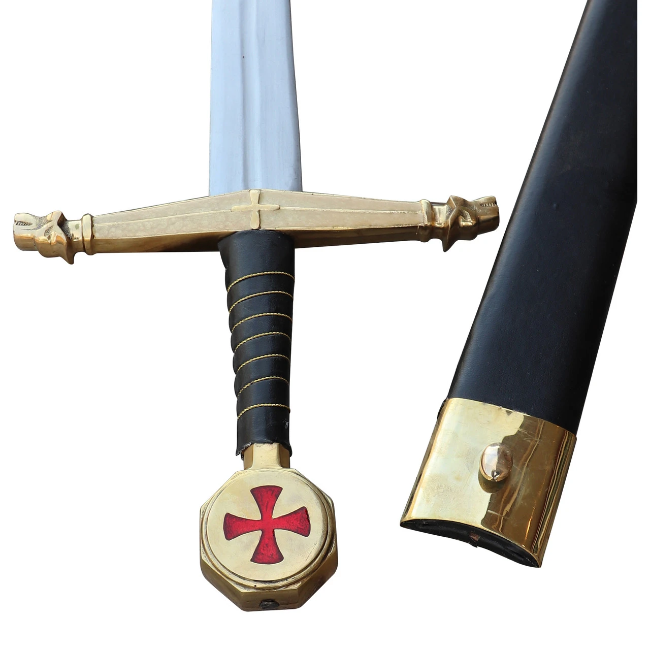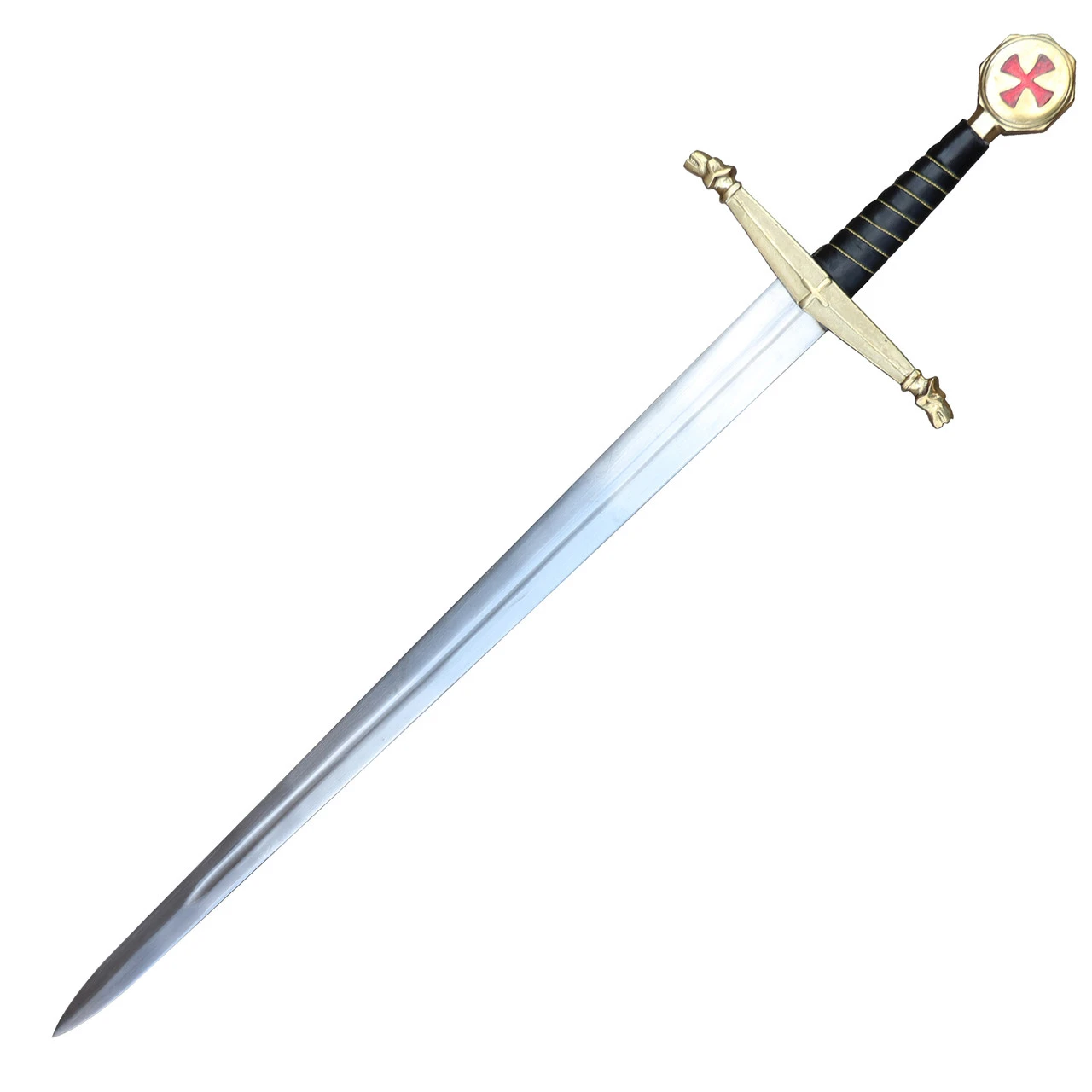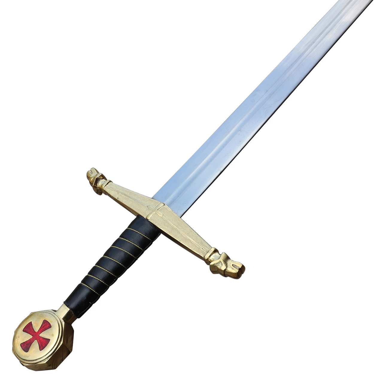 The Templar Knights were among the most fearsome and skilled fighting units of the Crusades. You could pick a Templar Knight out of the crowd by the red cross they wore. The pommel of this beautiful fully functional replica Templar sword also features this prominent red cross. Though this sword would make a beautiful decoration to add to your wall, it is fully intended to be used on the battle field. The peened hilt has a full tang warrior made construction for maximum damage. The hilt is wrapped in durable genuine leather, with a brass threading for better grip and style. The cross guard and pommel are both made of pure brass with a lion’s head protruding from both ends of the guard, and the blade is constructed of high-quality 1095 solid carbon steel. With this sword, victory is in the palm of your hands. Overall Length: 41 inches, Blade Length: 32 inches, Guard Length: 9.5 inches