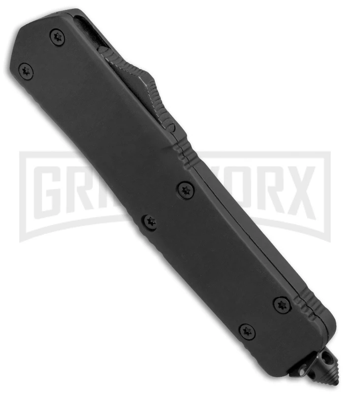 The Spartan OTF auto offers heavy duty construction and a tactical design. This affordable automatic has the feel of a much more expensive knife, with rubberized handles, a side mounted firing button, and a stainless steel blade. The handle is outfitted with a tip-down pocket clip and a glass breaker.