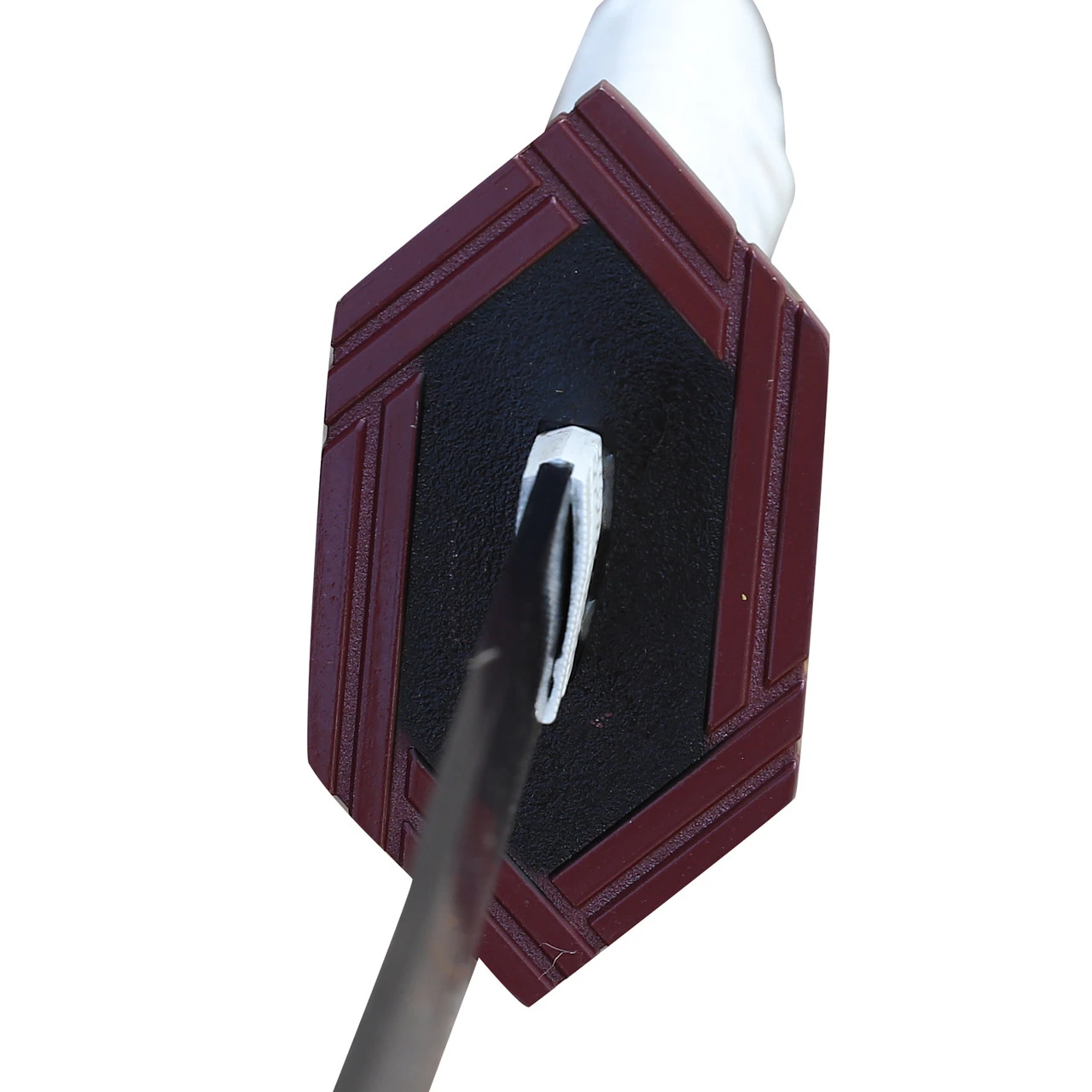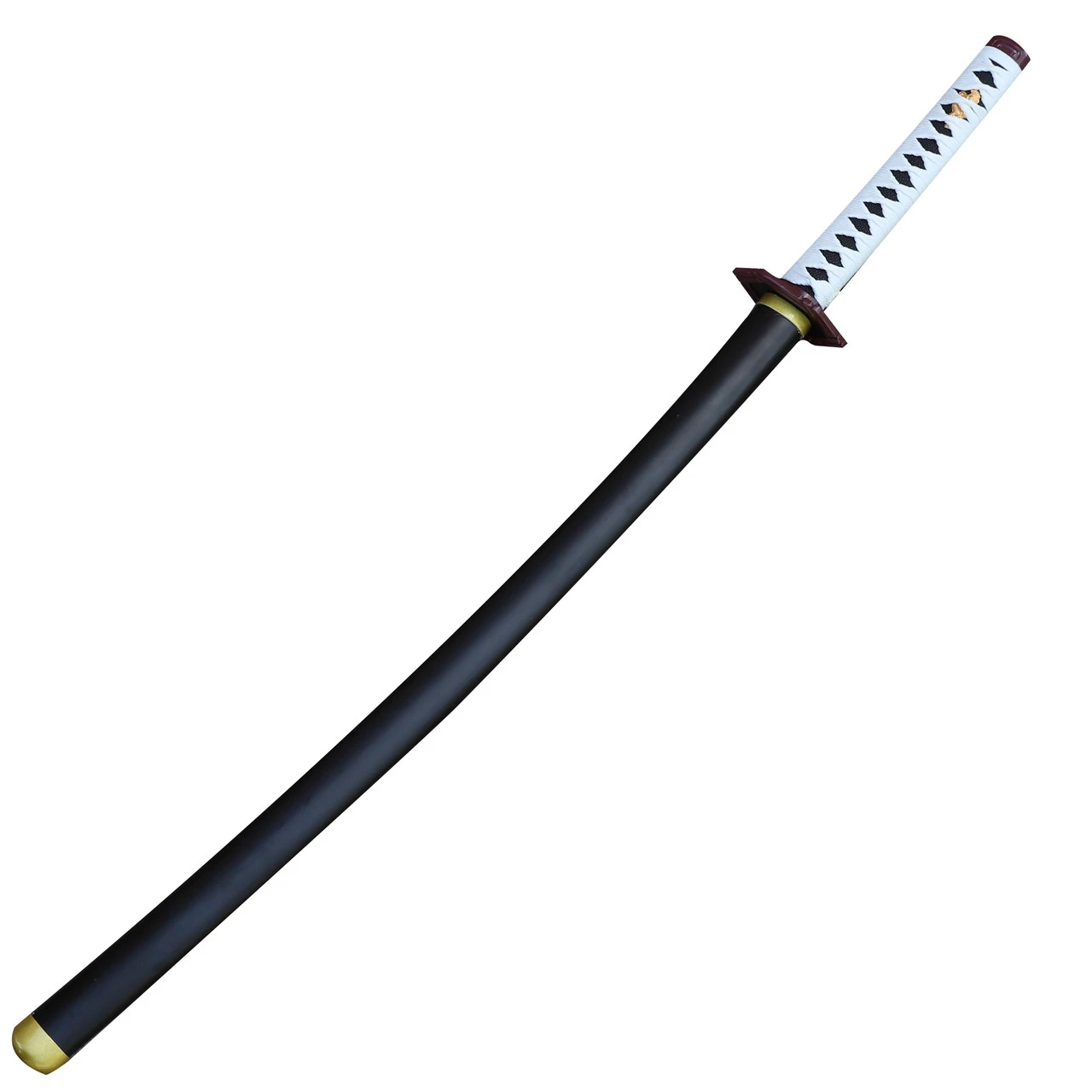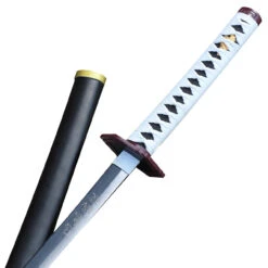 In order to become one of the highest-ranking demon slayers, known as the Nine Hashira, you must first prove your worthiness. That kind of training and dedication could not be achieved without the assistance of a reliable Nichirin, which is the sword or weapon that is specially made for a demon slayer to kill demons. In the anime, the sword is forged from scarlet crimson iron and scarlet crimson ore, which are collected from the mountains. Though we may not be able to obtain these exact materials, we have nonetheless created a fierce katana for your anime collection. This replica katana is made to look just like the sword owned by Giyu Tomioka, who is a very powerful member of the nine Hashira in the series. The blade is constructed of high carbon steel with a factory edge. A black faux ray skin handle is wrapped meticulously with white cotton in a traditional Japanese Style. The steel hand guard features a geometric design in a burgundy and black finish. Included with this beautiful collectible katana sword is a hard black scabbard to house your blade when not defeating demons. Overall Length: 38 inches, Blade Length: 26.75 inches