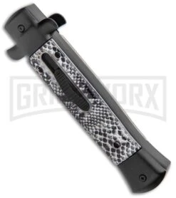 Mago 11″ Black Marble Italian Stiletto OTF Automatic Knife – Satin Plain